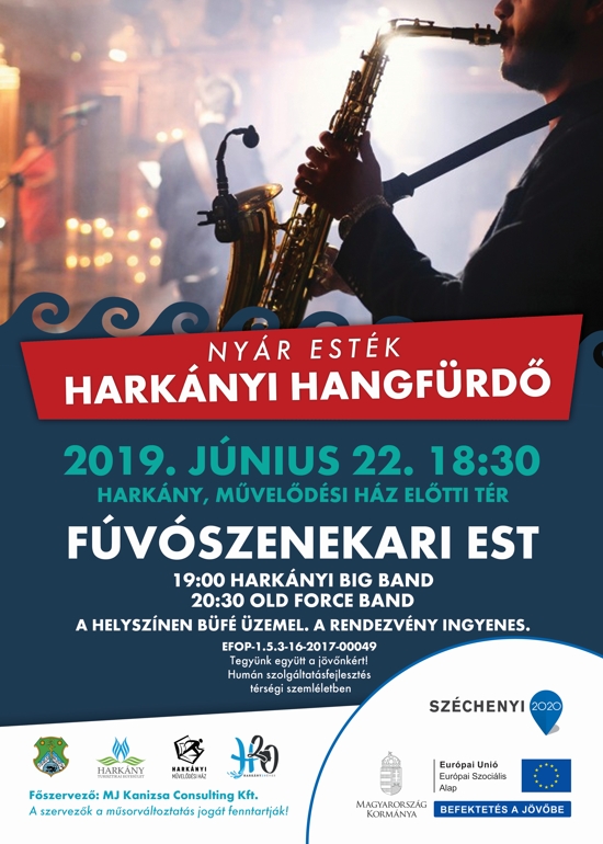 19 órától Harkány Big Band, 20.30 órától az Old Force Band zenél a Művelődési Ház előtti téren felállított szabadtéri színpadon.