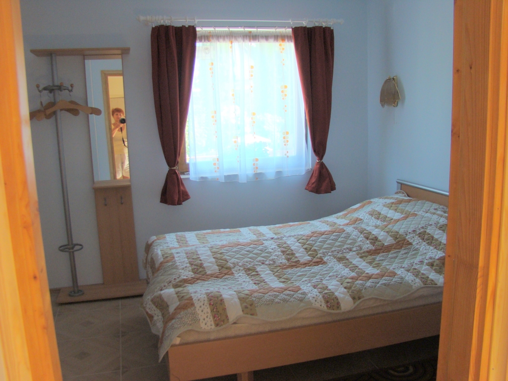A zöld színű apartmanházban három( egy és két hálószobás) önálló,minden kényelemmel felszerelt teljesen berendezett apartman áll a vendégek rendelkezésére.